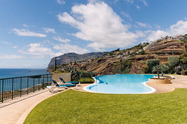 The modern building where this apartment is located provides excellent on-site amenities, including your own private parking space for easy access. You'll also have use of a private shared pool that boasts a stunning, unobstructed view over the sparkling ocean—ideal for cooling off after a day of adventure. Plus, there's a well-equipped gym area right there to help you stay active during your visit.