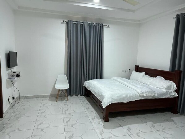 This is a newly built spacious 4-bedroom house located at Lakeside Community 8, near the police station. The rate is per room and you can book a room or the entire house (4 rooms) if you are traveling in a group. This place is convenient for families, groups and business travelers as it is convenient to host parties and business meetings. Once again, the rate is per room and not the entire house. Guest access Access to the dedicated workspace and kitchen downstairs, and living room upstairs During your stay My family and live just opposite the property and will be available to interact with guests as needed. Other things to note The price is per room and each room can accommodate 2 guests.