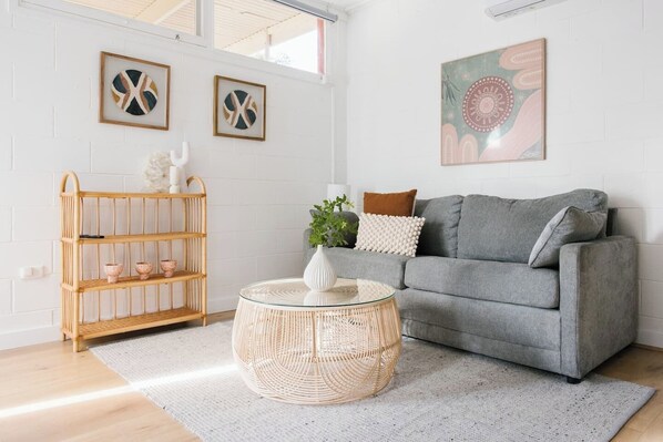 Beautifully renovated and furnished throughout this to bring the Byron Bay vibes to Kingston Park fresh and natural villa, floorboards throughout the 2 bedrooms, fully equipped kitchen with basic pantry items (coffee + tea, sugar, honey, butter, salt + pepper, basic condiments)