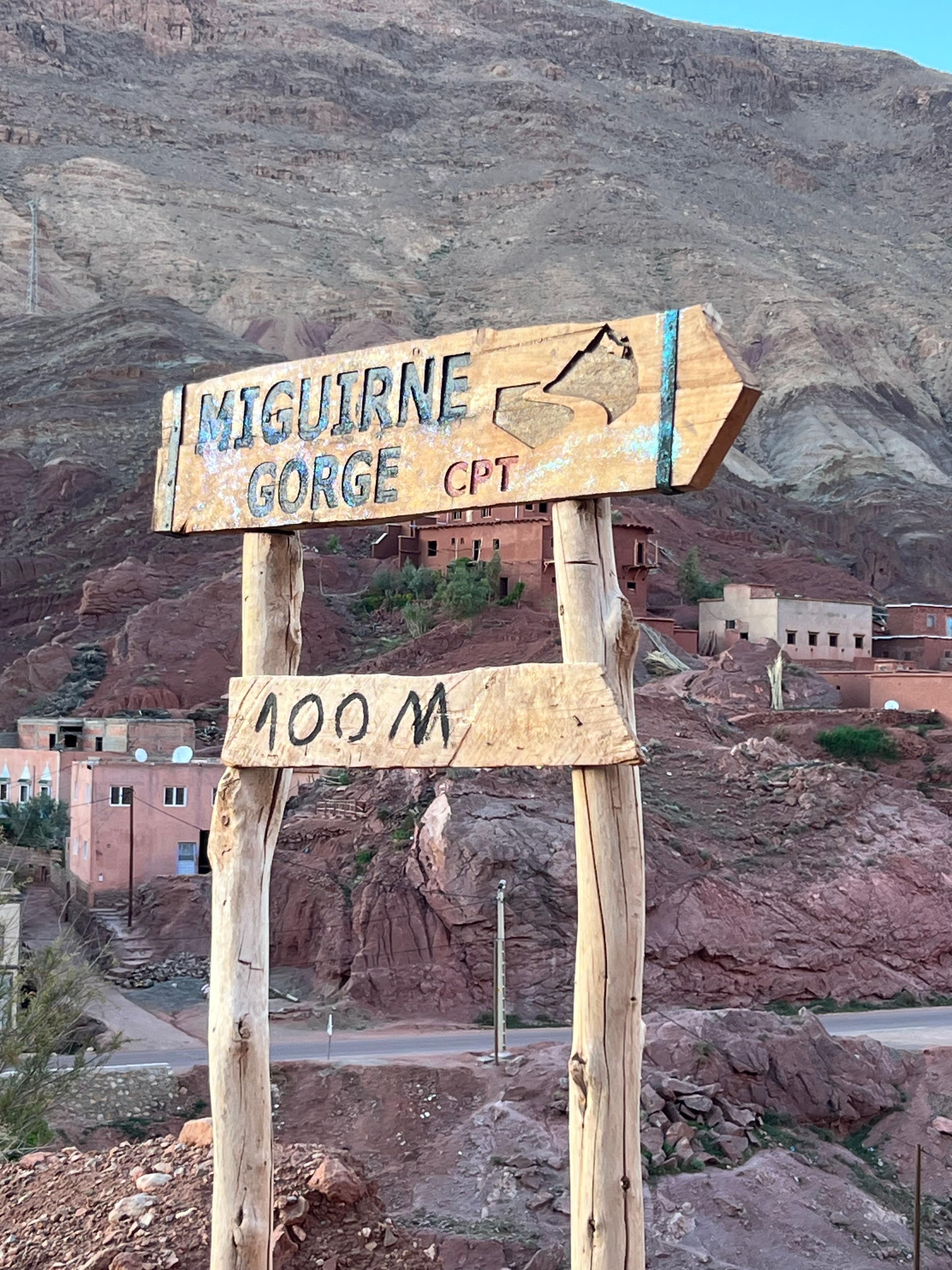 A 3 km de l'hotel au pied des doigts de singe garer sa voiture au parking dédié et prendre impérativement un guide pour visiter le canyon fantastique du Dades. Sans guide vous allez louper tout.