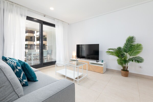 - Cozy living room with sofa, HD-TV and direct access to the terrace.