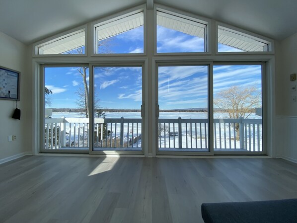 - Comfortable large couch with incredible lake views