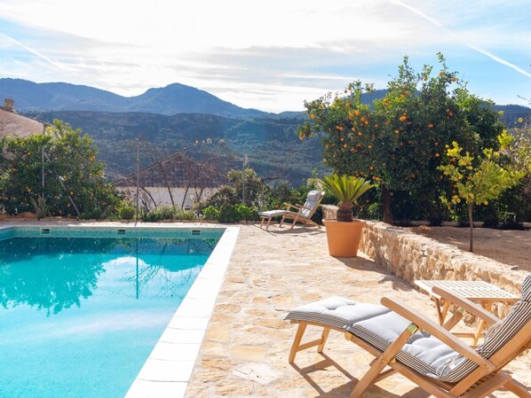 Luxurious house with pool, views, and parking.