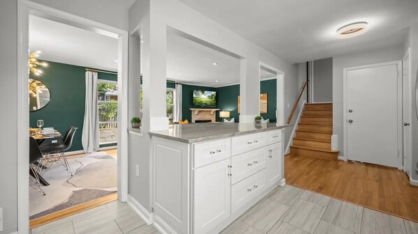 ⇥ Fully equipped + stocked kitchen.