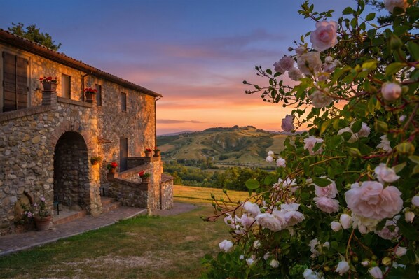 Questo casale umbro in pietra, adatto agli animali domestici, può ospitare comodamente 10 persone e dispone di una grande piscina privata con 6 lettini. La tranquilla proprietà si trova a breve distanza dalla graziosa cittadina collinare di Allerona. Dispone di un ampio giardino, di una zona pranzo esterna (con 10 posti a sedere), di un barbecue e di una graziosa terrazza con vista sulle colline umbre. Una destinazione perfetta per rilassarsi con la famiglia e gli amici.