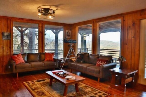 We stayed on dates December 31st-4th. The views were absolutely beautiful.The cabin definitely needs some updates- There are two bathrooms in living areas neither have locks. The one is a connecting room so it makes it even more inconvenient not having any privacy. The big cedar tree pulling into driveway needs to be cut back, it smacks your vehicle when pulling in and out. No way to avoid it since the other side is up against a fence. It would be beneficial to have a dining table as well for people to sit together for dinner. The cabin itself was stocked with pretty much everything you needed. Plenty of nice towels, kitchen is stocked with dishes and cooking tools. Hot tub was great and again the views were amazing!