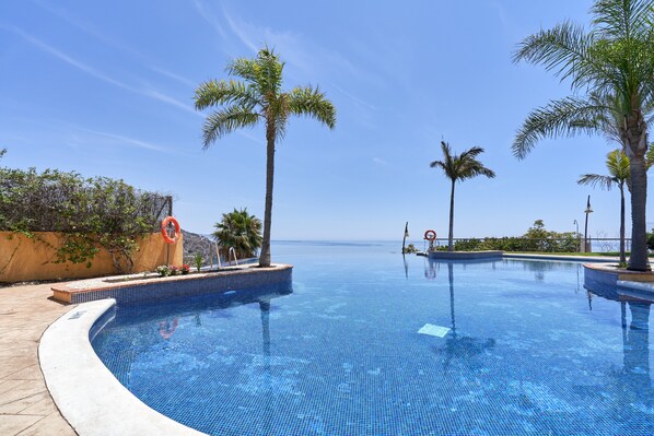 L'urbanizzazione offre una bellissima piscina a sfioro con il mare sullo sfondo e giardini esotici.