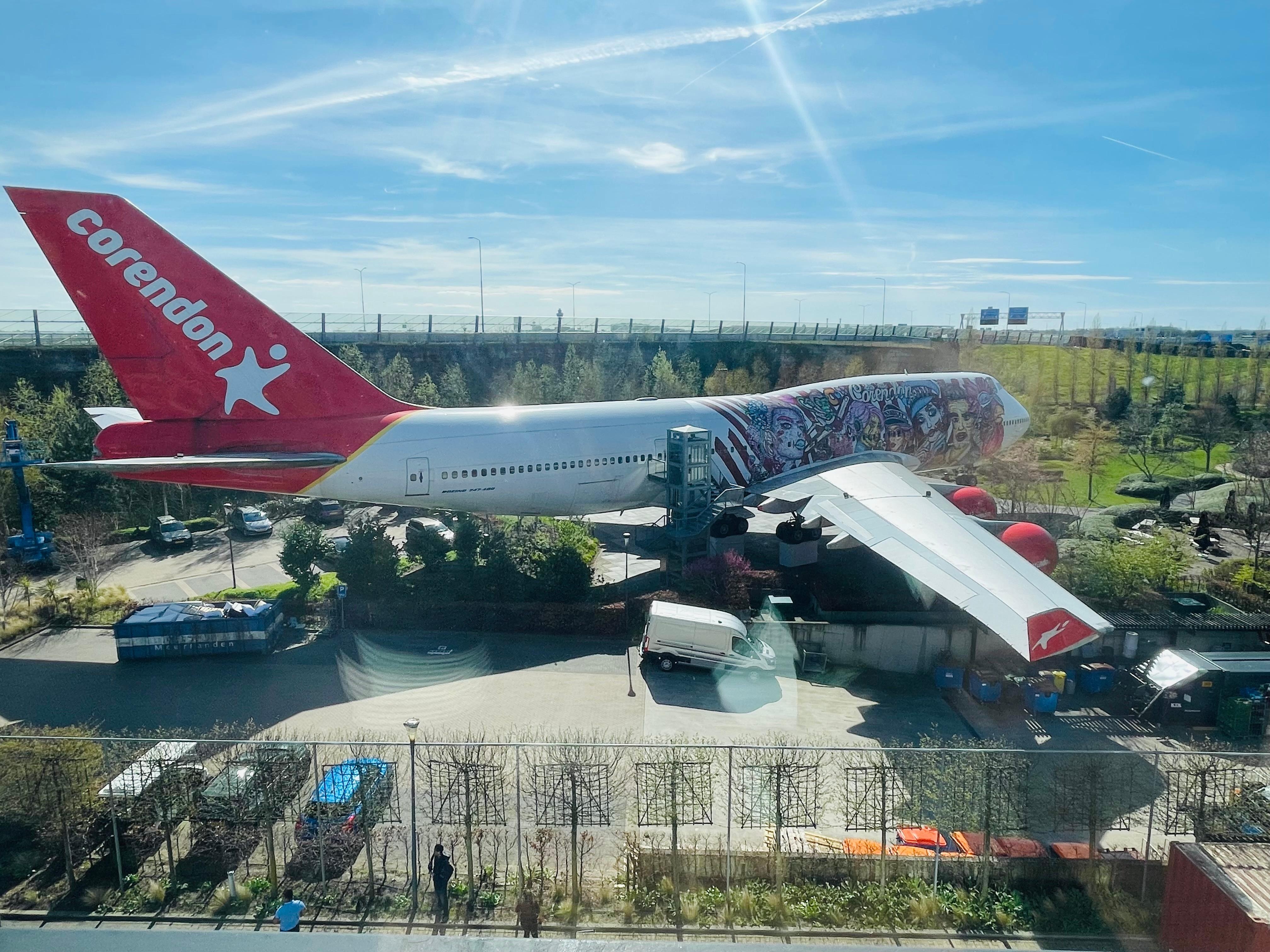 Airport shuttle easy to find only 10 mins from Schiphol airport. Free from airport 5 euros each to the airport. Corendon had a boeing 747 in the hotel grounds which could visit. There are three buildings including the urban reserved for refugees. A shop on site which was handy near main reception. We had several meals including breakfast, snacks and dinner during our 4 day stay. All food consistent with a stay at a marriott. Also used the swimming pool, sauna and steam rooms. Also a good gym which we didn't use. The quad room was a good size but pull out bed was squeeky though comfortable. Also used the skybar on the ninth floor with good views. Would stay here again.