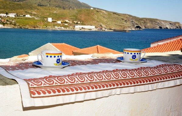 We were 5 friends in our 70's, two couples and one single. Between us we have been to many Greek islands over the decades. We found the island peaceful, friendly and, being September, relatively few tourists. The house was perfect, traditional Greek style as described, comfortable seating and decorated with great taste. It was close to two beaches and a very short walk to the centre of Hora, museums and tavernas. The kitchen was small but well equipped. The bedrooms and bathroom were downstairs, the two doubles opened onto terraces, the single onto a small area for drying clothes. For anyone with mobility issues going up and down the stairs to the living area might present a problem. The second toilet upstairs was welcome. We loved our stay at Panos House very much, our host was most responsive to our communications and we highly recommend it. However, as keen backgammon players we were disappointed that the set was missing 4 pieces. I'm sure that will be put right for the next guests!!If we come to Andhros again Panos House would be our first choice.Efkharisto poli KarakoulisDaphne and Diran