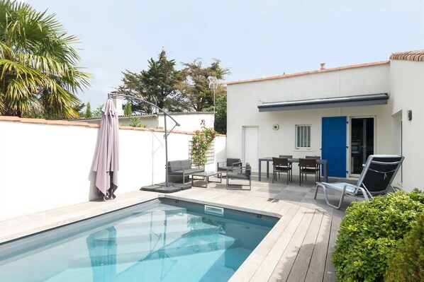 La zona giorno è composta da un ampio soggiorno / sala da pranzo circondato da 4 grandi finestre esposte a sud e da accesso alla terrazza / piscina (100 m²) e ad un ampio giardino (400 m²).