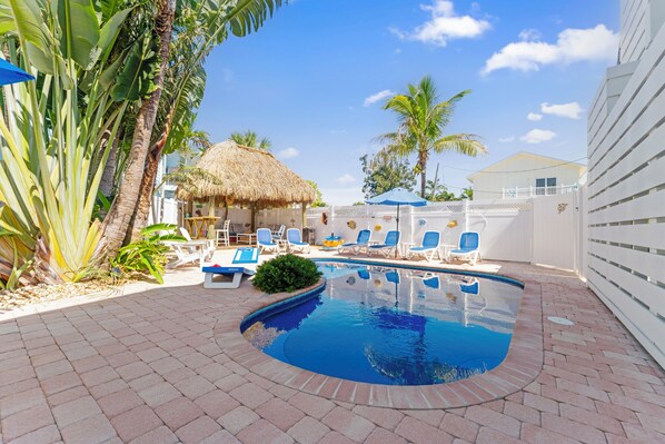 The duplex property features fully remodeled units thoughtfully arranged around a freestyle heated pool, creating a private, resort-style atmosphere. Guests may reserve a single unit or the entire property , total of 5 units available for rent in multiple duplexes making it ideal for extended families or refined group gatherings seeking both togetherness and privacy.