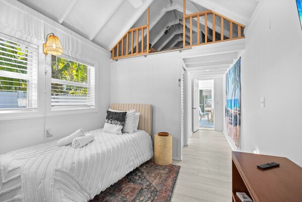 Step inside to discover a bright, spacious open-concept layout with stylish furnishings, a cozy seating area, a large smart TV, and a collection of classic board games for relaxed evenings in. The sleek chef’s kitchen is fully outfitted with stainless steel appliances and a charming coffee station featuring a 2-in-1 Instant Pot K-cup brewer—perfect for morning lattes on the patio. Enjoy al fresco dining, swaying palm views, and warm sea breezes from your private outdoor space, complete with a grill. High-speed WiFi, central air conditioning, and a convenient washer/dryer complete this carefully curated oasis where comfort meets coastal elegance.