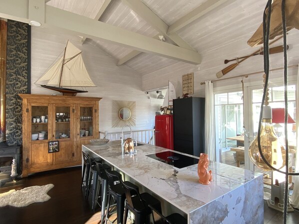 Nel quartiere di Abatilles, casa in legno, circa 120 m2 su 3 livelli, su 400 m2 di terreno, a 200 metri dai piccoli negozi a 900 metri dalla spiaggia ea 3500 metri dal centro di Arcachon. Piano terra: - camera da letto con 5 letti (90x190), TV, bagno + wc / camera da letto con letto matrimoniale (140x190) e bagno con doccia. 1 ° piano: soggiorno-sala da pranzo con aria condizionata divano, TV, connessione internet WIFI, lettore DVD con vista terrazza di 40m ² con mobili da giardino./ cucina aperta, 4 fuochi a gas, cappa aspirante, forno a microonde, forno, lavatrice -asciugatrice, lavatrice, frigo-congelatore. - camera da letto con 1 letto matrimoniale (160x190), armadio, TV, bagno en-suite con wc, WC separato. Secondo piano: camera da letto con 1 letto matrimoniale (140x190) + 1 letto (90x190), bagno + wc, dressing. giardino recintato con 2 posti auto. Barbecue. - Animali non ammessi È severamente vietato festeggiare nell'affitto (interni esterni). PULIZIA COMPRENDE BUCATO NON FORNITO: POSSIBILITA AFFITTO LENZUOLA LETTI 1 POSTO 12 €, LETTO 2 PIAZZE 20 €, TOVAGLIOLO KIT 8 €, MATERIALE DA BAGNO 3 €, ASCIUGAMANO 2 € PRONTO A DISPONIBILITA ', LETTO OMBRELLO, SEDIA ALTA, BAGNO BAMBINO, PASSEGGINO. Ad Arcachon le vacanze hanno qualcosa di magico! Puoi fare tutto a piedi: andare in spiaggia, al ristorante, al mercato, al parco moresco, all'osservatorio ecc ... o in bicicletta attraverso 220 km di piste ciclabili che circondano il bacino di Arcachon e visitare la costa fino alla duna PILAT. -Il tour bus (luglio e agosto) o il piccolo treno turistico (da aprile a ottobre) ti permetteranno di scoprire la città. -La barca gira intorno all'isola degli uccelli, le cabine, o incrocia per raggiungere il Cap Ferret senza dimenticare la pesca, o gli sport acquatici come windsurf, sci nautico, surf o nuoto. kite surf, equitazione sulla spiaggia, tennis, golf. Tassa di soggiorno da pagare sul posto