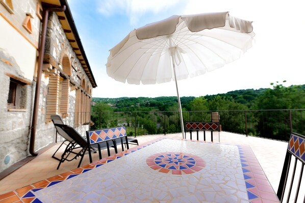 Appartamento panoramico, 3 camere da letto, patio, vista valle