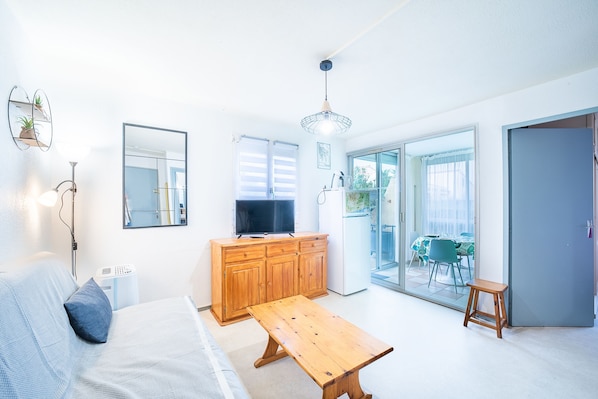 - 11 m² living room with TV, double sofa bed...