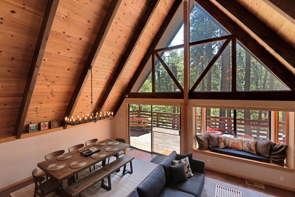 This newly remodeled classic chalet is a sure winner for your mountain getaway! Located in the ever popular Blue Lake Spring and walking distance to Fly-In Lake (fees apply) you will also have access to Snowflake Lodge with pool, lake, tennis/basketball/volleyball and bocce ball courts, movie night, restaurant and lots of fun activities (fees apply). Enter into the spacious great room with soaring ceilings and a gas log stove ( + forced air heat) to cozy up to while watching the snow fall from the floor to ceiling windows. Whip up a mountain meal for the crew in the fully stocked kitchen with gas cooking stove, Stanislas steel appliances and granite counter tops. With 2 bedroom on the main floor both with Queen beds + a loft with 4 Twins there is room for 2 families to sleep comfortably. The extra large deck is the perfect spot for entertaining, BBQing or for just relaxing and sipping a cool drink after a day of exploring all the Sierra has to offer. Surrounded by pines the Berg Haus is where you want to be for your next Sierra Getaway!