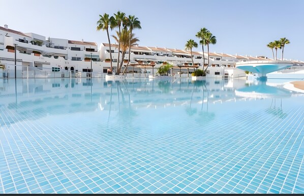 Uscite sul vostro balcone privato e godetevi la splendida vista sulle montagne del Teide, la vetta più alta di Spagna, ideale per la colazione o un drink serale. La proprietà offre 2 piscine esterne condivise, di cui una riscaldata disponibile tutto l'anno. Potete usufruire anche della doccia esterna, del tavolo da ping-pong condiviso e dei giardini curati con panchine e sentieri.