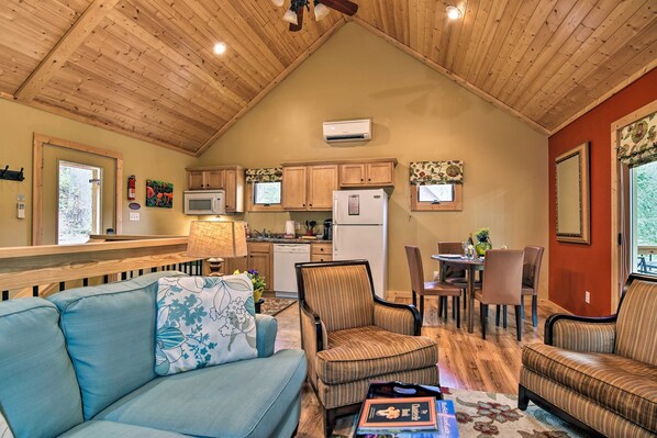 Light the gas fireplace and grab a spot on the comfortable sofa where you can watch a show on the flat-screen TV and just unwind. If the great outdoors are calling your name, relax on the porch swing as the sun goes down or make friends with fellow travelers at the community fire pit.