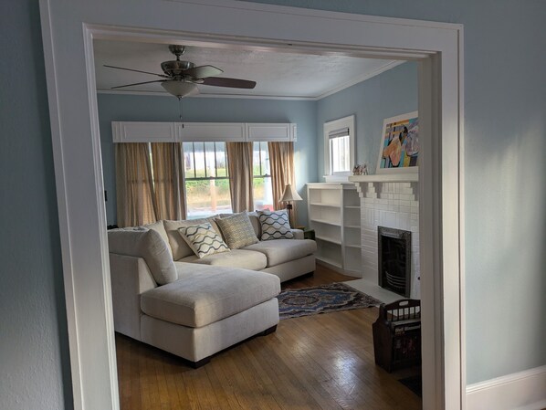 We loved the location, at the western end of West Asheville Village. Several great restaurants and bars are within walking distance. The neighborhood is great for walking, either to the village or among the 100-year-old homes. The front yard has a variety of flowers that bloom for months. Most of the house maintains its vintage character, but the master bedroom and bathroom have been recently modernized. All the rooms are fairly large except for one bedroom, which is good for a child or storage. We spent a lot of time on the front porch, enjoying the birds and flowers.