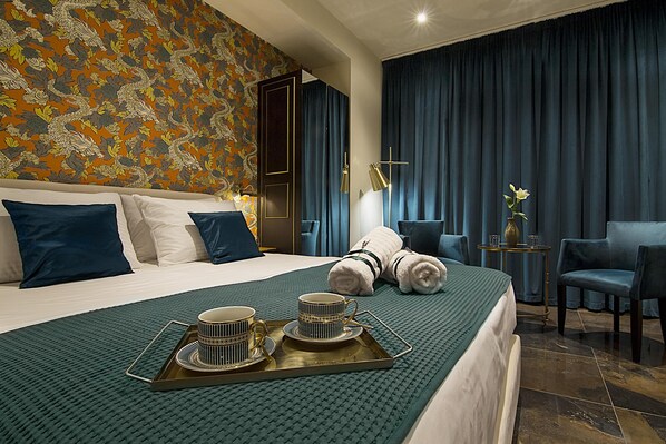 Una camera elegante e lussuosa situata nel cuore pulsante della città di Atene, a un solo respiro dall'iconica Piazza Syntagma.