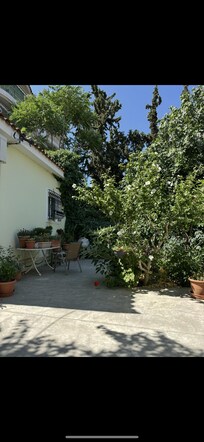 Outside there was a really nice green area with lots of flowers and trees that helps to relax and find peace. Some cats may walk out there to say hello and a cute dog is happy to receive some cuddles!
