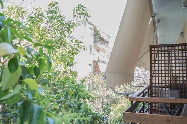 The apt is located on the 2nd floor of the building. There is two bedrooms , the one with a comfy double bed and the second with 2 single sized ones.. In the living room there is a sofa bed and a TV. The kitchen is fully equipped with the amenities and cookware for preparing a breakfast and a normal meal. Equipped with outdoor furniture,where you can enjoy your morning coffee and relax in the afternoon.