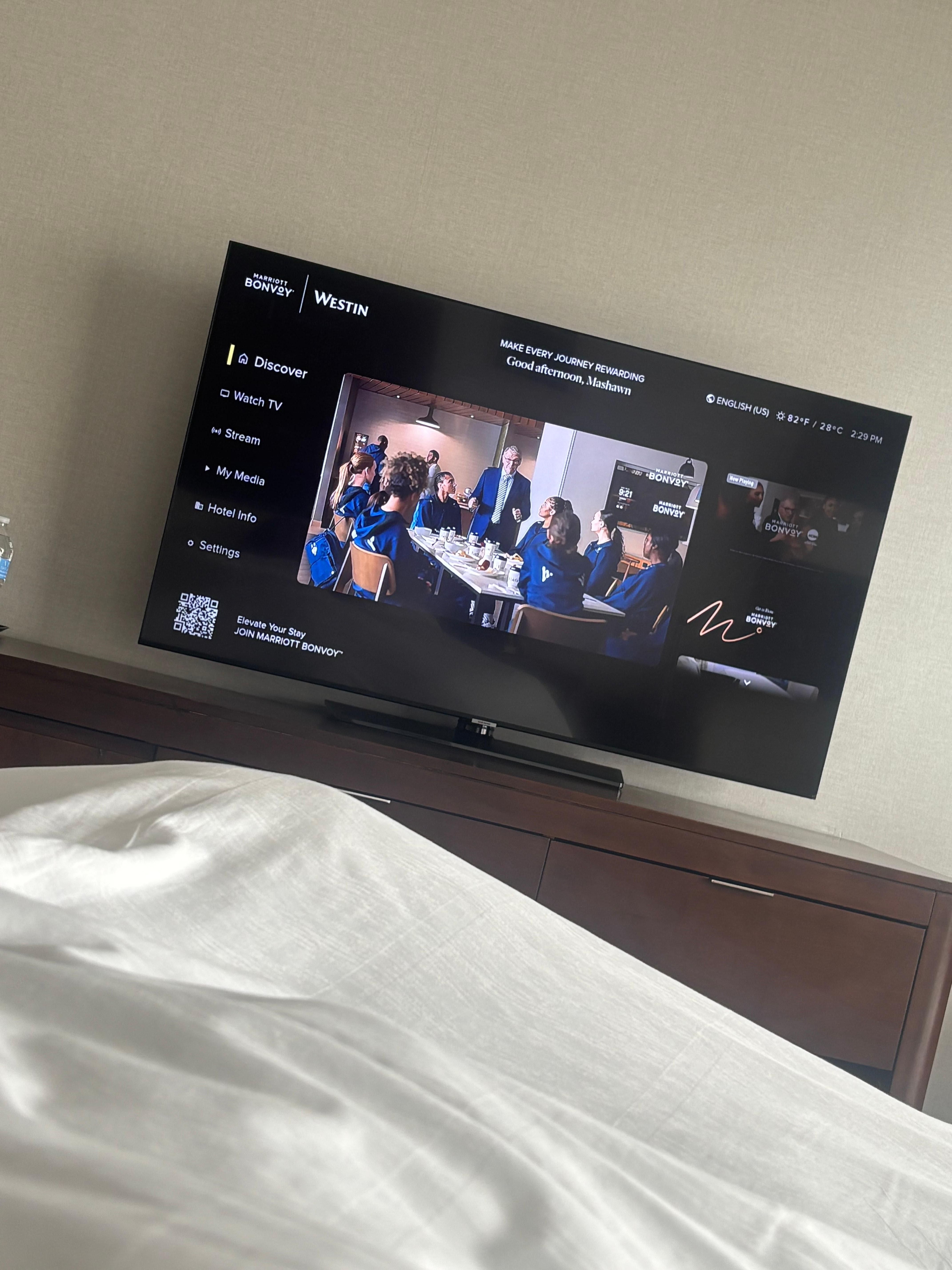 I had a beautiful view on the 43 floor. The food at both restaurants was delicious and service was wonderful. The gym kept me busy as well as the indoor pool. Having a built in Starbucks was also handy. Comfortable bed. The bathroom isn’t large, but I was a solo traveler so it didn’t bother me. I’ll stay here for the Big South tournament next year, as it’s a short walk to the congress center.
