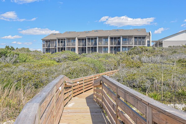 Judy's property was an awesome rental! It is in outstanding condition and is very comfortable. The kitchen has everything you'd need if you want to prepare meals there. There's a nice screened-in, shaded patio off the living area and off the master bedroom; they're very nice for enjoying coffee, a meal, or just the cool breeze. She also provides many beach amenities so you don't have to bring your own (beach umbrella, chairs, beach/pool toys, etc.). There is a pool right outside the back of the condo (sadly, it was being repaired and was unusable during our stay) and a second pool easily accessible behind the next building. Beach access was directly from the complex; you didn't need to cross the road or haul your beach stuff very far at all. We spent a lot of time on the beach! The location is great, too. There is a great, small restaurant right across from the complex that serves great BBQ, burgers (including shrimp burgers), and hushpuppies (among other items; they do cash only, but they're reasonably priced. The aquarium and mini golf were only a few minutes away, as well as Atlantic Beach proper with all of its restaurants, movie theater, park, etc. You can bike, run, and walk safely from the condo's location. I highly recommend Judy's condo. We plan to stay there in the future if we choose Atlantic Beach as our summer destination.