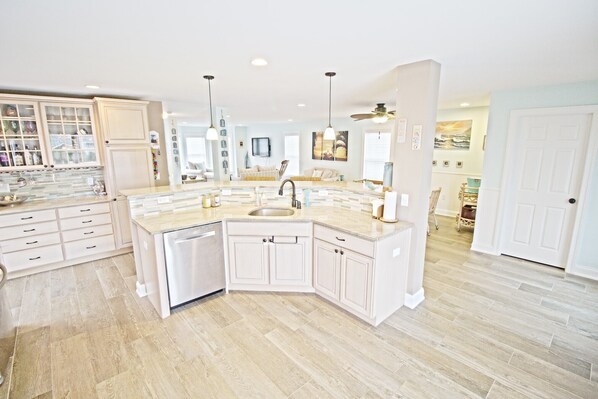 From start to finish, we had a great stay here. The check in and check out were very smooth and easy. The kitchen was had everything we needed for meal prep, and the deck right off the kitchen was perfect for enjoying morning coffee. The kids were happy to find puzzles and games for our rainy day, and there were plenty of beach/ sand toys to select from for beach days too. The short walk to the beach and views of both sunrise and sunset from the house were icing on the cake!