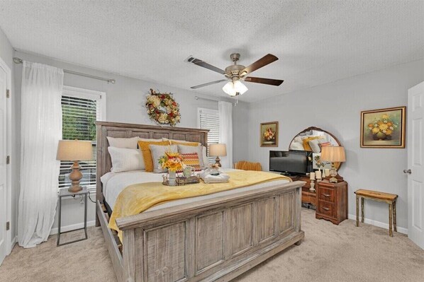 This comfortably furnished home with 2 beds and 1.5 baths is located across from the Augusta National on a quiet street with a fenced back yard. There's a king bed in one bedroom and a queen in the other. The well equipped kitchen has been updated to include new appliances, there's a front porch, a back patio, and a fireplace. The home is located close to shopping and restaurants and is less than 5 miles to downtown Augusta and the medical district. Pets welcome with $40 fee per pet.
