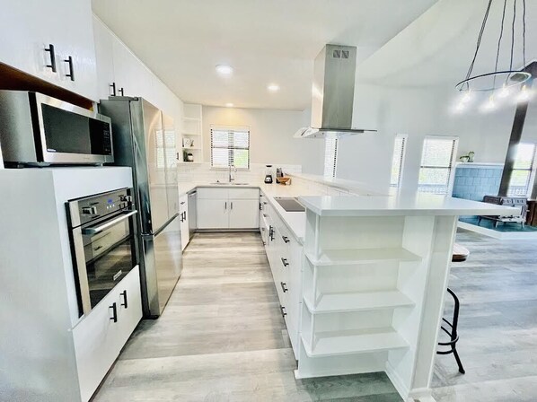 Frigorifero, microonde, forno, piano cottura