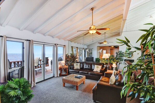 Sea Cliff Hideaway: una lussuosa villa attico con soffitti a volta situata sul bordo della scogliera, proprio sopra l'oceano. Nessuna residenza in tutta Avalon �� pi��� vicina all'acqua. Dotato di finestre a volta a volta, questo rifugio molto privato è luminoso e soleggiato tutto il giorno. Il Maestro ha un re di lusso di fascia alta per una fantastica notte di sonno con dolci onde che lambiscono la riva sottostante. Den si converte in seconda camera da letto privata con porta a scomparsa e letto matrimoniale deluxe Murphy. La biancheria da letto extra è un divano letto con materasso in gel deluxe. HDTV a schermo piatto da 42 pollici con DVR, HBO, Showtime e altri. Due balconi privati con splendida vista sull'oceano! 2 caminetti elettrici giapponesi per un maggiore calore quando necessario (camera matrimoniale e zona giorno). Accesso all'ascensore / nessun gradino. Grande carrello da golf in stile limousine. Internet ad alta velocità. Un totale di 1109 piedi quadrati. H1079
