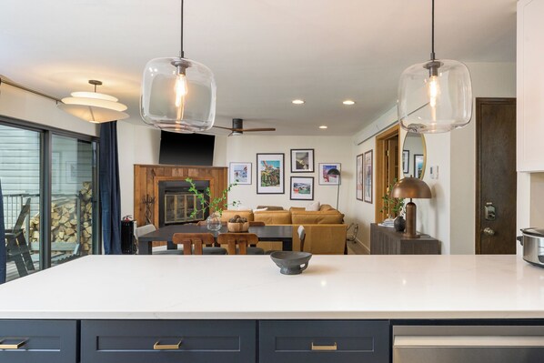 The residence has plenty of room to spread out and has been decorated with chic mid-century modern appointments. Be sure to gather round the fireplace after a long day on the slopes. While you do, tune in to your favorite show or the big game on the large flat screen tv with HBO Max, Netflix, Amazon Prime Video, cable and more!