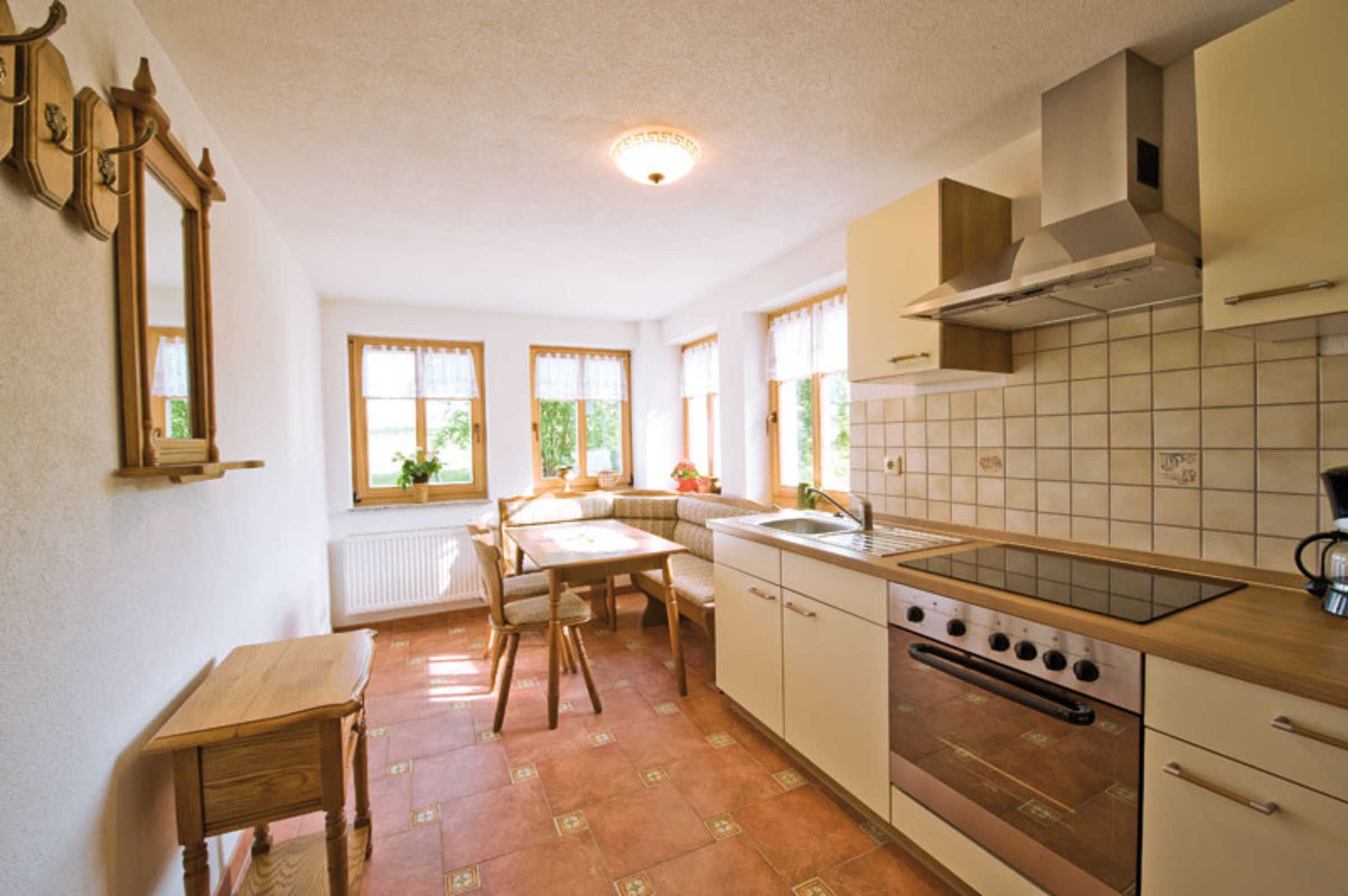 La casa ha una superficie totale di circa 120 m² e offre spazio per un massimo di sei persone su due piani. Pavimenti in vero legno, pareti intonacate con argilla e soffitti con travi in legno creano un'atmosfera accogliente. Dal momento che non ci sono tappeti, la casa vacanze è ideale anche per chi soffre di allergie. Al piano terra si trova un accogliente soggiorno con camino, satellite.-TV, home entertainment, lettori CD, DVD e Bluray. La nuova cucina è completamente attrezzata con piano cottura in vetroceramica, frigorifero, lavastoviglie, forno, macchina da caffè (fagioli interi), tostapane e bollitore. In cucina è la sala da pranzo per un massimo di 6 persone. Il corridoio conduce al bagno al piano terra con doccia e servizi igienici e la sauna in una volta in pietra arenaria (a pagamento). Una scala in legno conduce ad una grande camera da letto al piano superiore con un letto di fattoria (180 x 200 cm), lettino per fattoria e armadio. Altre due camere da letto, ognuna con un bagno con doccia e servizi igienici interni, si trovano sul lato opposto della sala. Una camera da letto è arredata con due letti singoli (90 x 200 cm), la seconda con un letto doppio (180 x 190 cm). In particolare nelle camere da letto e nei salotti è stata prestata attenzione all'originalità dei mobili e di quelli completamente arredati con mobili rustici del marchio Voglauer.