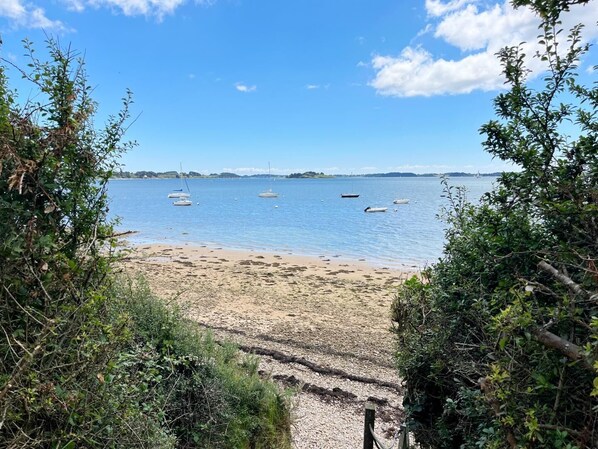 Studio furnished as follows: - Living room with dining area, lounge area and foldaway bed 140 x 190 - Equipped kitchen open to the living room - Bathroom with shower - Independent toilet with hand basin The accommodation is not equipped with a washing machine, a laundromat is located 350m away. (iron and ironing board on request) Exteriors: Spacious 60m2 terrace facing south with garden furniture, outdoor table, hammock, sun loungers and barbecue Private garden at the front of the house Parking spaces inside the property Accommodation adjoining the owners' house. Welcome to this ideally located holiday apartment, just a few steps from the Port-Blanc pier, the starting point for a getaway to the islands of the Gulf of Morbihan. You will appreciate its large south-facing terrace, perfectly designed to enjoy beautiful sunny days in complete privacy, as well as its private garden on the north side, offering a haven of peace. Less than 50m away, a small beach awaits you for moments of swimming and relaxing on the sand. From the gîte, go on foot or by bike to explore the magnificent landscapes of the Gulf of Morbihan by following the coastal paths. Baden, located between Vannes and Auray, will seduce you with its numerous activities, shops and restaurants to enhance your stay. Water sports and golf enthusiasts will find what they are looking for here. Less than 1km away, sit on the terrace of an oyster farm to enjoy a platter of oysters while enjoying a breathtaking view of the sea. Spacious studio on one level with its generous outdoor spaces, in the heart of the Gulf of Morbihan and close to Ile aux Moines!