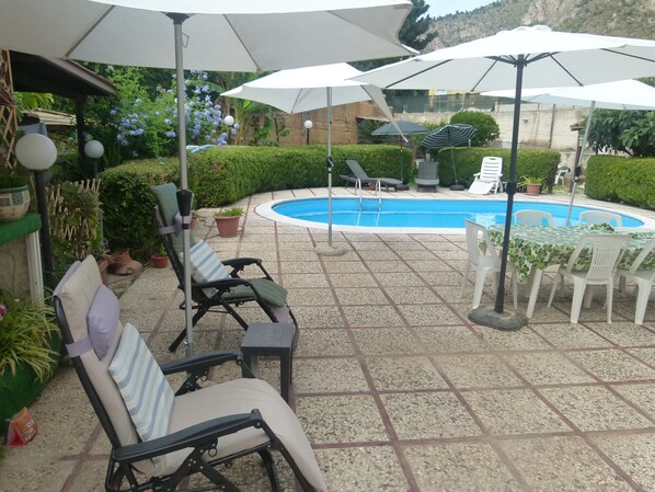 Il giardino esterno, in comune con i proprietari è arredato con sdraio ed ombrelloni e dispone di una grande piscina a disposizione degli ospiti, inoltre per la gioia dei vostri bambini è disponibile una piccola area parco giochi. Altra particolarità del nostro alloggio, è la presenza a pochi passi dalla villa di un piccolo maneggio con cavalli da trotto e per gentile concessione dei proprietari, durante il vostro soggiorno, su richiesta, è possibile trascorrere momenti ed esperienze bellissime, si può interagire accarezzare o fare un giro con il calessino, ovviamente, gli orari di visita sono regolamentati dal proprietario. Cos'altro aggiungere, soggiornando nella nostra struttura "VILLA AURORA" troverete natura, relax, mare, cultura e storia….