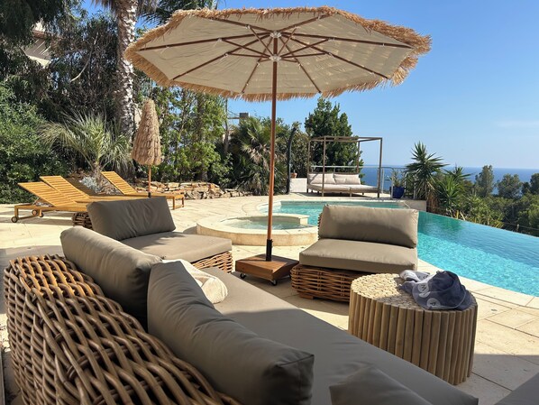 Large 6 p. air-conditioned family home with swimming pool on the seafront