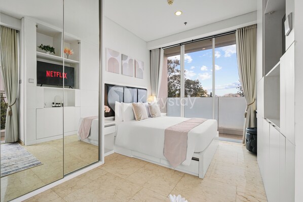 Questo appartamento di Bandung offre accesso wireless a Internet gratuito con una velocità di più di 25 Mbps. La Smart TV da 43 pollici con canali via cavo e Netflix.