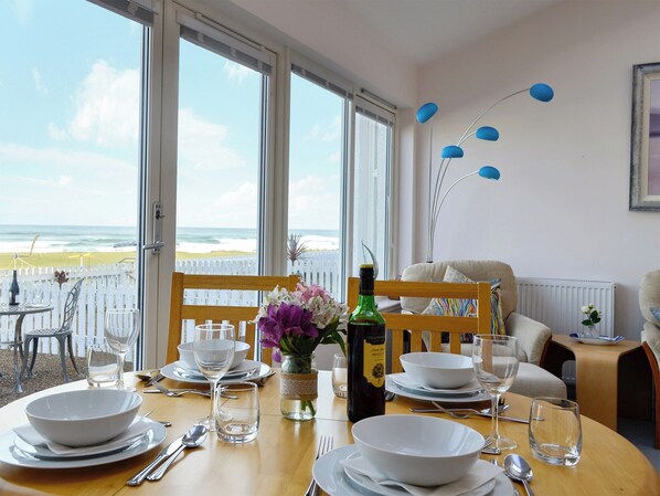 Con una spiaggia dall'altra parte della strada e vista sul mare dal soggiorno, non potresti essere più vicino al mare !. Piano terra: