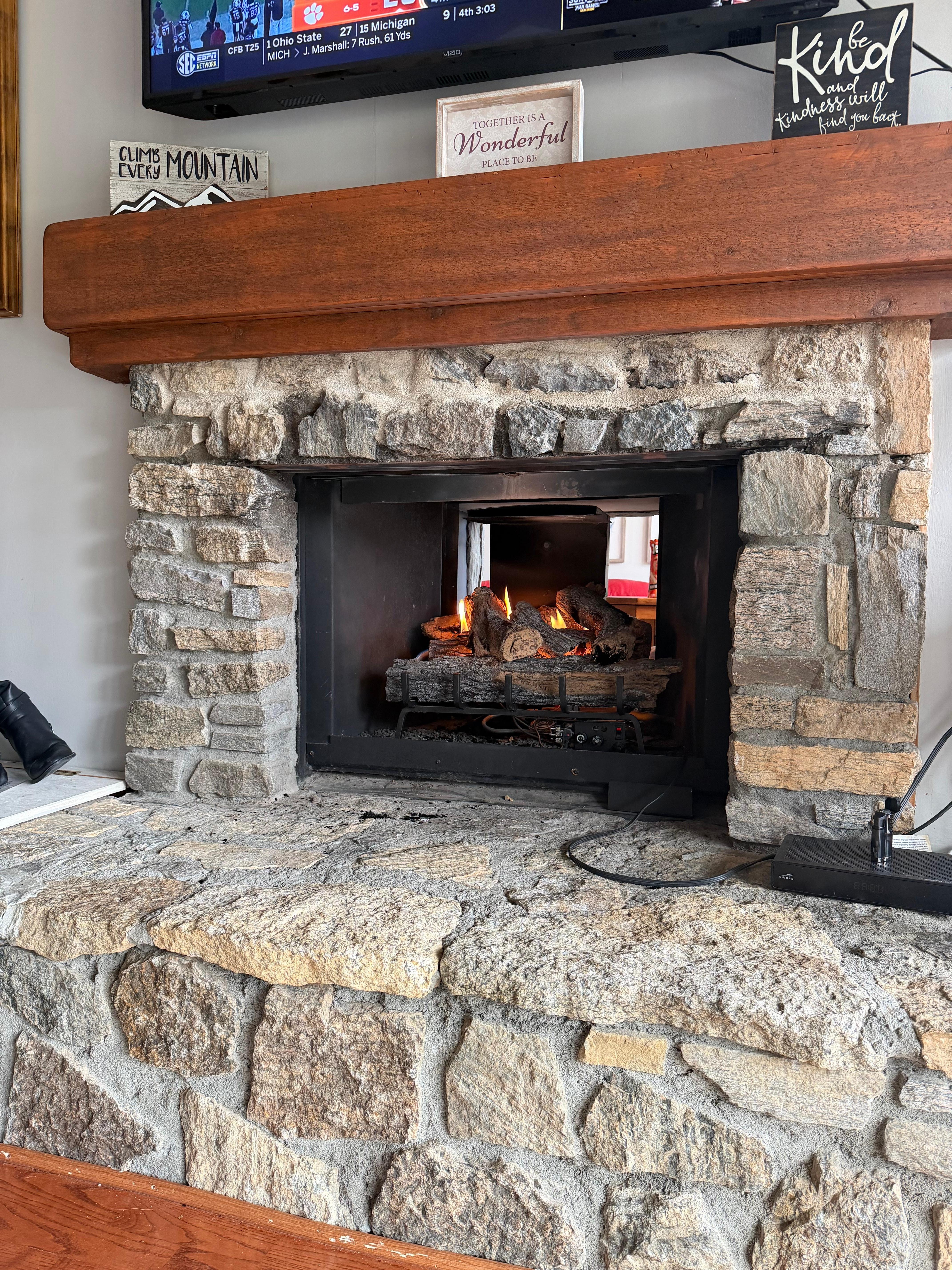The large open deck provides additional outdoor seating and a gas fire table for taking in the beautiful mountain scenery. Enjoy a game of corn hole while you grill dinner on the large gas grill.