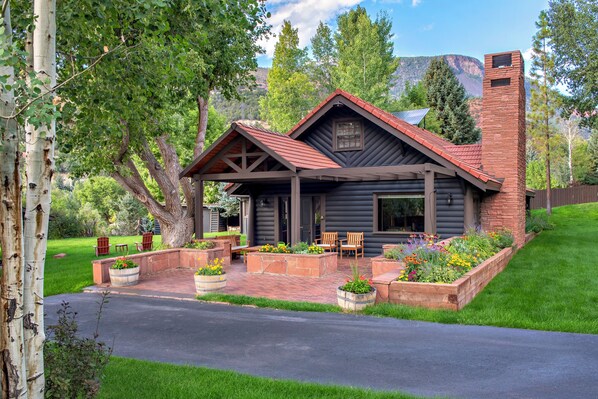 This unique 1950's log cabin hunting lodge is utterly charming! Located within a few minutes walk to the 2 rivers that surround Basalt and the shops and restaurants of downtown. Situated on a large, quiet half-acre lot in a lovely neighborhood, with great outdoor patio and lawn spaces. It's an easy walk to the Frying Pan river and the Roaring Fork River- enjoy Basalt's world class Gold Medal Fly Fishing waters. Just 21 minutes to amazing skiing at Aspen, Snowmass , Highlands and Buttermilk. There is an A/C unit upstairs.