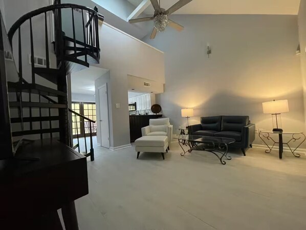 Kick back and relax in this calm and stylish space. This beautifully updated 1-bedroom, 1.5-bath townhouse offers a perfect blend of comfort and modern design. Enjoy a bright, open-concept living area with contemporary finishes, a fully equipped kitchen, and a spacious bedroom with its own private bath. The home also features a charming side yard—ideal for outdoor dining or relaxing—as well as a cozy patio/deck where you can unwind, entertain guests, or enjoy your morning coffee. Whether you're staying for business or leisure, this inviting townhouse provides everything you need for a comfortable and refreshing stay.
