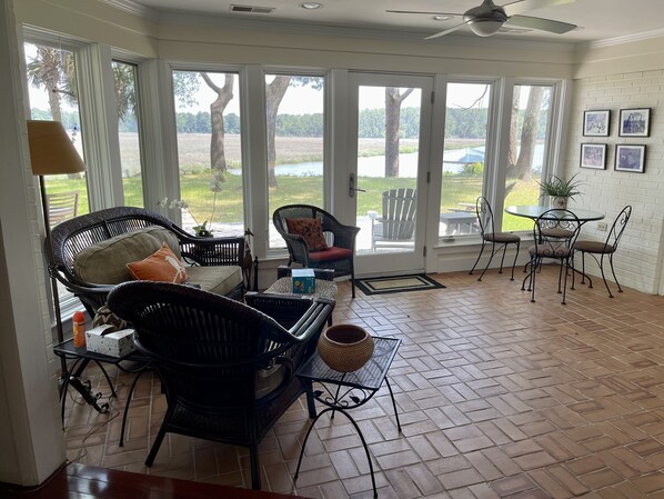 La sala Carolina è completamente chiusa, ottiene belle brezze estive e ha vista a 180 gradi le insenature e palude. Abbiamo diverse serie di binocoli e libri di uccelli per il vostro piacere di bird watching.