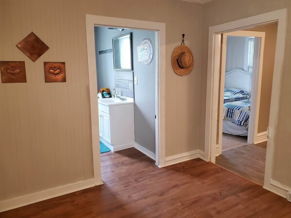 Newly renovated three-bedroom house that reflects a charming Country Farmhouse, but modern conveniences. Lacy curtains, a classic large country kitchen, a large dining room seats 6, paintings, and other memorabilia to enjoy and feel you are back at grandma's house. Approximately 2,000 square feet with two enlarged enclosed porches and a large deck. Parking near the entrance.