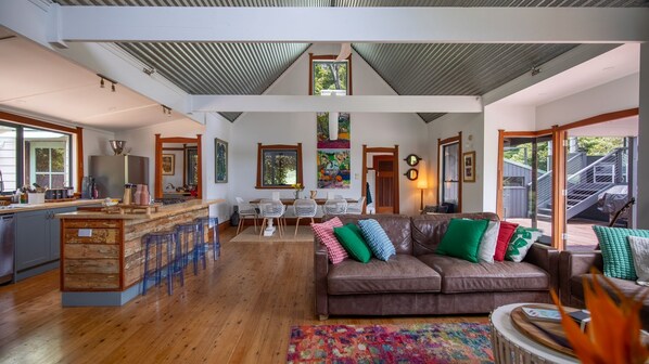 This beautiful home with cathedral ceilings and multiple living areas is ideal for a group of friends or several families who want to get away together! Located in Beaumont at the Southern end of Kangaroo Valley it has a lovely northerly aspect, a wet edge pool and beautiful gardens. With 4 bedrooms and 2 bathrooms it comfortably sleeps 8 guests.