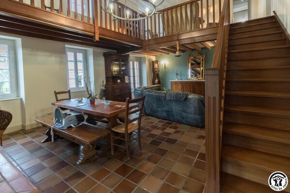 The Gîte du Pigeonnier is first and foremost a family story. Fanny, the owner, inherited this farm from her grandparents. It's the family home where she spent her early years. A farmer, this vibrant and energetic young woman embarked on renovating part of the building to create a gîte, which she opened in 2023. With a view of the famous dovecote, from which the owners, in the Middle Ages, released pigeons to deliver their messages (only slightly slower than social media...), you'll enjoy the open countryside and the many activities and attractions near this magical place. Ideally located, you'll be 9km from Muret (Aqualudia water park, train station, restaurants, shops, seminar room, market, and the ViaGarona hiking trail) and Saint-Sulpice-sur-Lèze (a very pretty village), 11km from Venerque-Le Vernet (canoe rentals), 14km from Auterive (Auterive Adventures treetop adventure park), and a 30-minute drive from one of France's most scenic detours: Rieux-Volvestre. You'll also be on the edge of the Ariège department: the artists' village of Carla-Bayle is 31km away, the Mas d'Azil cave is 43km away, and Foix is 60km away. Two-story cottage: - Ground floor: veranda (fitness equipment), living/dining room, kitchen, games room, bedroom (1 double bed 160*200cm), sleeping alcove (extra bed 140*190cm), and shower room/WC. - First floor: mezzanine, 3 bedrooms each with 3 double beds 140*190cm, and bathroom/WC. Heating, electricity, and hot water are provided by solar energy. The garden is open-air and can be used as a café in good weather. Petanque balls, bicycles, badminton rackets, and a volleyball net are available. An additional bedroom is available for up to 10 people for an extra €90 per weekend. Authentic family home in the Lèze valley, 30km south of Toulouse, in the countryside, surrounded by cows, chickens and quails