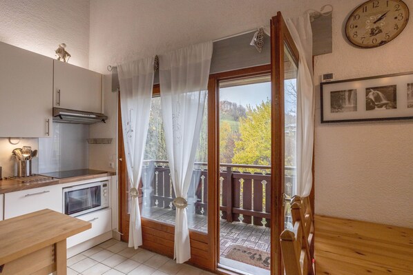 Tout était là ,soleil neige vue.(petit bemol,appareil a fondu ne fonctionne pas,poelon à raclette rouillé et lave-vaisselle nettoie pas très bien).aussi non rien a redire très belle appartement au pied des pistes, proche de tout.