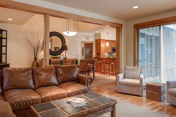 Potresti trovarti sdraiati sul grande patio dopo una giornata di nuoto a The Cove o ammollo nella vasca idromassaggio dopo aver colpito le pendici del Monte. Laurea breve. In ogni caso sei sicuro di ammirare l'ambiente tranquillo che è Sunriver e ti chiedi quando sarai in grado di tornare.