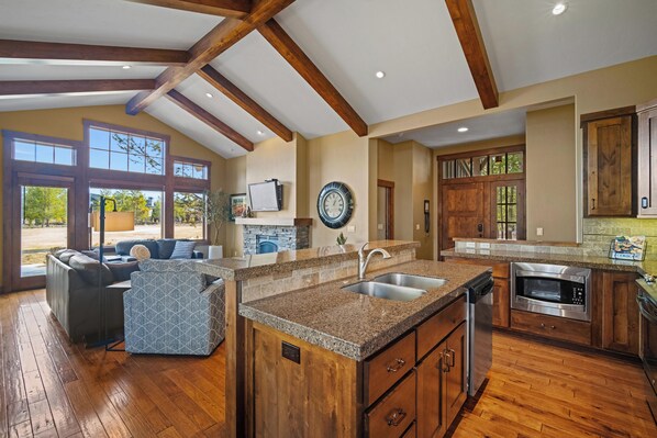 Nel cuore di Caldera Springs 44 Caldera Cabin è il campo base perfetto per esplorare Sunriver e oltre. Questa casa di 1 809 piedi quadrati ha 3 camere da letto e 4 bagni che la rendono piacevole per un massimo di 8 persone. All'interno di questa lussuosa cabina a un piano troverete ampie zone giorno e pranzo in cucina con grandi finestre, pavimenti in legno, soffitti a volta e dettagli in travi di legno. Altre caratteristiche di questa casa includono: