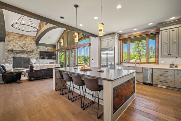 • Ample seating at the dining room tables and kitchen island's barstools